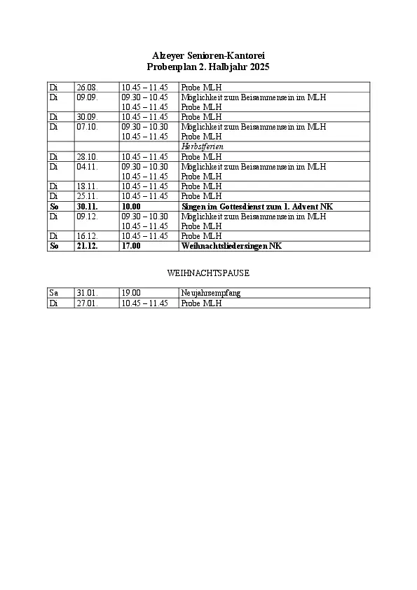 Probe: i.d.R. 2. und 4. Dienstag im Monat von 10.45 Uhr - 11.45 Uhr